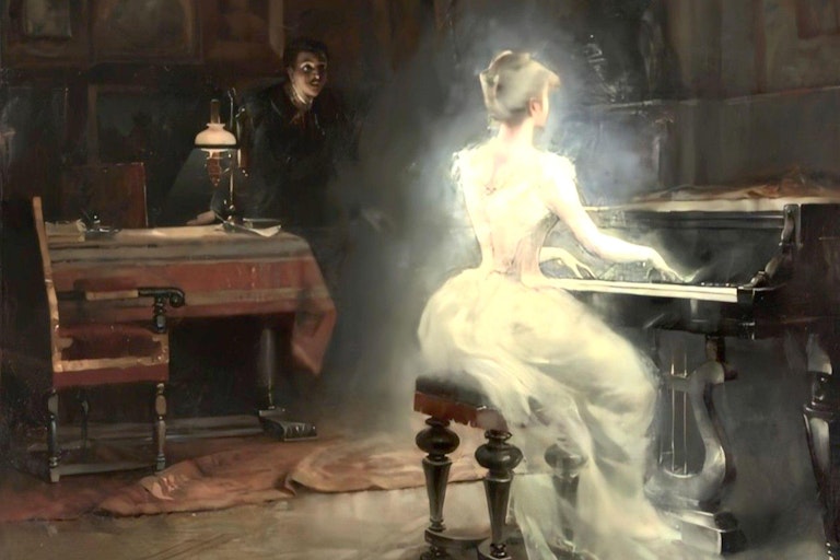 Централно питање које је мучило скептике и истраживаче натприродног у 19. веку гласило је: Зашто духови нису голи? Овај апсурд је сажео карикатуриста Џорџ Крукшанк 1863. године, пишући да је немогуће да постоје „духови ношења одеће“, а пошто се духови не смеју појавити без одеће из пристојности, следи да се духови „никада нису појавили и никада се не могу појавити“. Пре 19. века, иконична слика духа у посмртном покрову или белини сугерисала је континуитет између леша и поруке коју дух носи живима са оне стране гроба. Међутим, појавом спиритуализма и психизма, људи су почели да пријављују духове обучене у свакодневну, тадашњу одећу, што је покренуло питање: Ако је душа етерична супстанца, зашто би носила материјалне предмете?