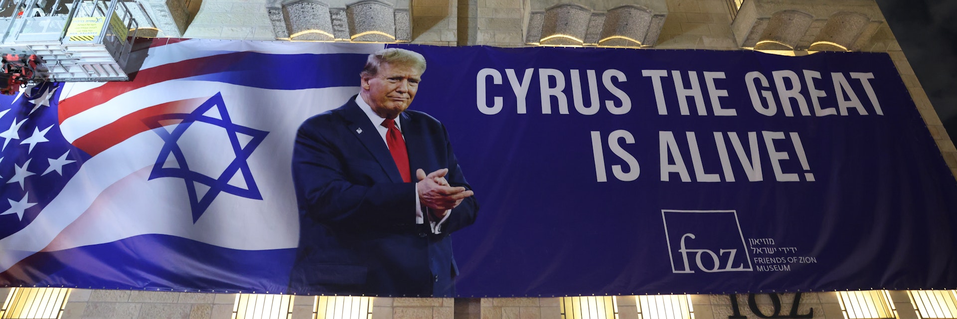 Банери у Израелу са натписом „Кир Велики је жив“ који приказују Доналда Трампа, директно се ослањају на јеврејско историјско памћење о Кировој улози у ослобађању заробљеника. У овом контексту, дипломатски развој који је Трамп подржао у вези са мировним планом у Гази тумачи се као историјски, божански чин ослобођења. Овим поређењем, Газа је метафорички представљена као Вавилон – место изгнанства и ограничења – а Трамп је представљен као нови Кир – нејеврејски владар изабран од Бога да донесе ослобођење или помоћ Јеврејима у кључном тренутку.