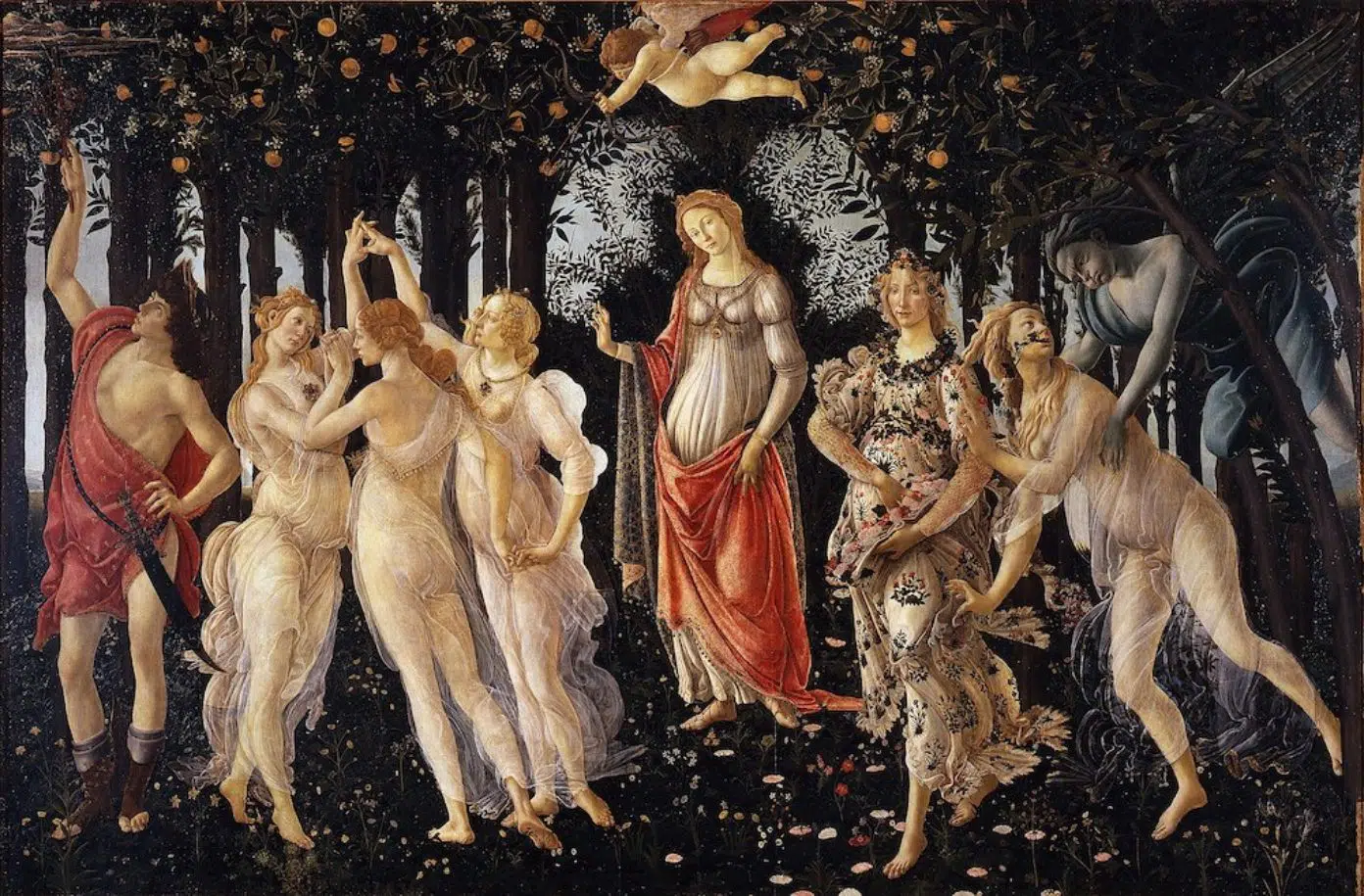 Један од најиконичнијих мотива у уметности, који своје корене вуче директно из грчке митологије, јесу Три Грације, божанства лепоте, шарма, креативности и доброхотности. Оне су често приказиване као три нага женска лика у међусобном загрљају, симболизујући складно јединство. Иако су у грчкој митологији познате као Харите, а у римској као Грације, њихова улога као пратиља Афродите, богиње љубави, остала је константна у уметничким приказима кроз векове. Оне су се појављивале у бројним ремек-делима, при чему је Ботичелијева „Примавера” можда најпознатији пример, где ове фигуре својом појавом уносе осећај грације и божанског реда, постајући трајни симбол уметничке инспирације и естетске савршености.